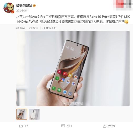 5月30日消息,據微博博主@數碼閑聊站透露,一加正在開發一款新的手機產品。這款手機被稱為一加Ace 2 Pro,它將采用與OPPO Reno10 Pro+手機相似的6.74英寸1.5K 1440Hz PWM京東方屏幕,并且搭載驍龍8 Gen 2滿血版處理器。此外,該手機散熱面積加大,支持100W級別的快速充電。預計該手機將在"7月至8月"期間推出。