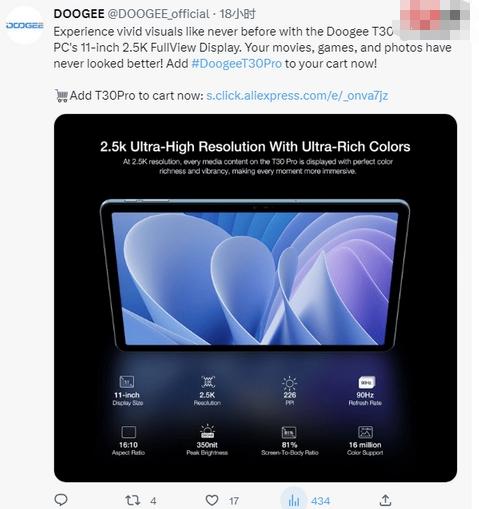 近日,Doogee宣布在6月份(6月12日至6月17日)發布其全新款Android平板電腦,名為Doogee T30 Pro。這款平板電腦將搭載聯發科Helio G99芯片,配備8GB RAM和256GB存儲空間,并支持microSD插槽,可擴展高達2TB的存儲容量。