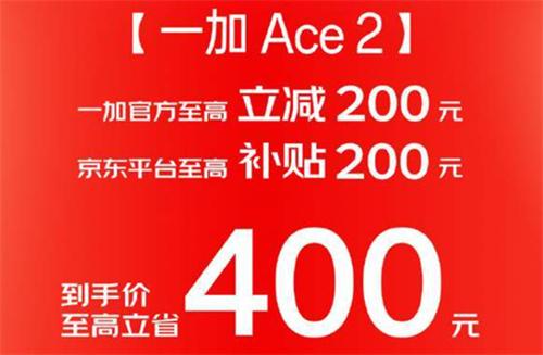 根據京東平臺官方信息顯示一加旗下的ace2機型,在本次2023年6月18日的電商促銷節期間消費者可以享受官方贈送的200元降價優惠,同時京東官方另外為用戶提供200元的補貼。這也就意味著該機型的12+256GB的版本只需要花費2429元人民幣就可以購買,哪怕是更高端的10 6512GB的版本只需要3099元就可購買。