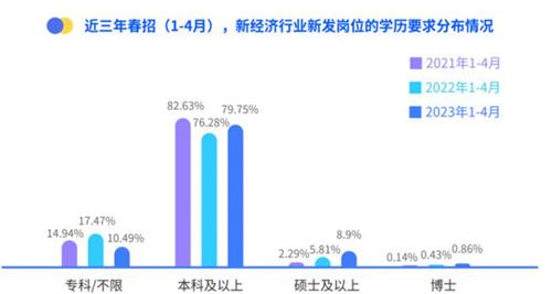 在2023年春季招聘時期崗位的需求逐漸降低人才的供應出現了嚴重的飽和,在2023年春季招聘中所有崗位要求本科及以上學歷的崗位占比達到了9.75%。于2022年同時期增長了3.47%,要求學歷在碩士及碩士以上的占比達到了8.9%,求碩士及碩士以上學歷的要求占比達到了0.86%。除本科以上學歷專科的競爭最為明顯供應和需求比例達到了3.53,相對而言本科人才的供應比僅僅只為2.34。