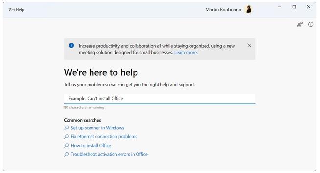 當用戶打開獲取幫助應用程序,尋求在其PC上的幫助時,將會顯示一條關于Microsoft Teams Essentials的橫幅廣告,并提供了了解更多的鏈接,可以將用戶引導至Microsoft Teams Essentials的網頁。不過,用戶可以手動關閉該橫幅。