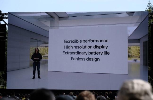 蘋果在開場不到5分鐘的時間內(nèi),就介紹了這款15英寸的MacBook Air。它的機(jī)身厚度僅為11.5毫米,重量略超過3磅,被官方稱為全球最薄的15英寸筆記本電腦。