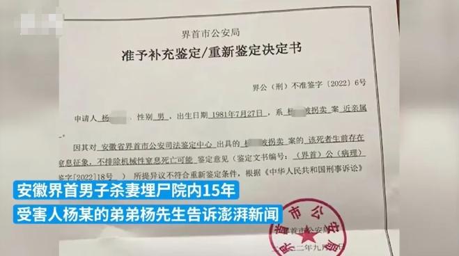 近日,一起發生在安徽的男子殺妻埋尸案宣判引發了關注。根據報道,這名男子將妻子的尸體埋藏在自家院內長達15年之久。經過審判,被告人被判處死刑,但緩期執行兩年。然而,受害人的弟弟楊先生對這一判決表示不滿,并當庭提出了抗訴。