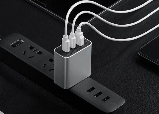 這款充電器采用氮化鎵元器件制造,官方聲稱與傳統65W充電器相比,體積縮小了48%。充電器具有2C1A共3個USB快充輸出接口,支持最大67W的輸出功率。