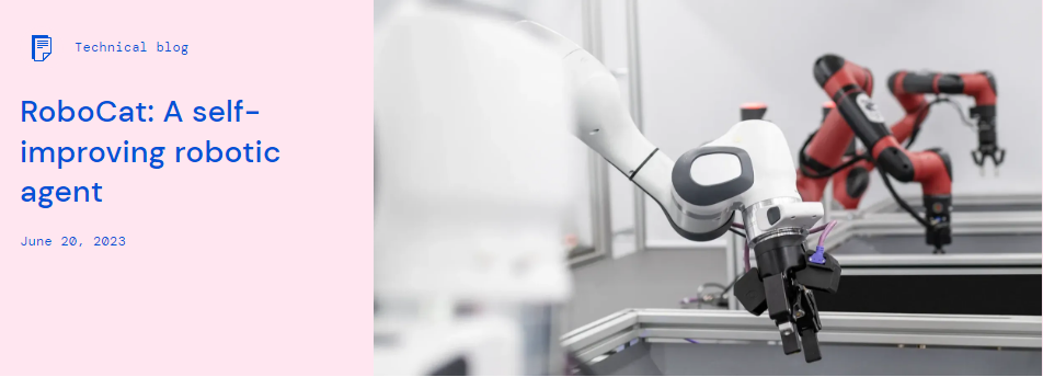 谷歌旗下的DeepMind于美國東部時間6月20日,展示了在機器人上使用的AI智能體RoboCat,只需要進行100次的演示訓練,就可以將任務解決,還能進行自我改進。DeepMind表示這是全球第一個能夠適應和解決多重任務的智能體。