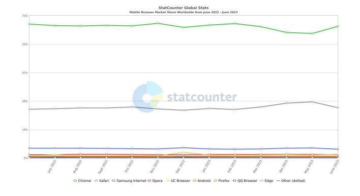 T之家 7月2日報道,Statcounter近日發布了2023年6月的報告,詳細介紹了瀏覽器及其市場份額的最新變化情況。