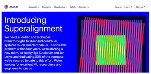 OpenAI預測,超級智能(即比人類更聰明的系統)可能在未來十年內到來。為此,人類需要比目前更先進的技術來控制超級智能。因此,他們計劃在所謂的"一致性研究"方面取得突破,該研究的重點是確保人工智能對人類的利益。為了支持這項工作,OpenAI將拿出未來四年獲得的算力的20%來解決AI失控的問題。