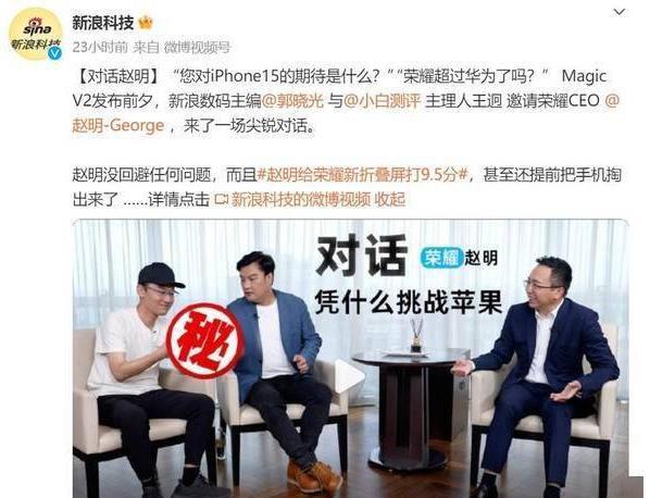 趙明相信榮耀Magic V2將在高端市場擺脫蘋果一家獨大的局面。一方面,高端市場的直板機創新已經達到了瓶頸,而折疊屏市場則呈逆勢增長。更重要的是,榮耀找到了折疊屏的竅門,實現了更完美的一體化設計。因此,榮耀Magic V2有望成為iPhone 15的最強對手,也可能成為果粉們的第一款折疊屏手機。