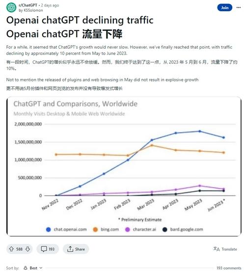 根據(jù)Reddit網(wǎng)友KSSolomon分享的圖表數(shù)據(jù),最近的消息顯示,Bing Chat在今年的月活躍用戶數(shù)接近15億人,僅次于OpenAI的ChatGPT。