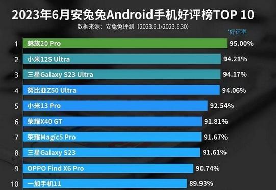 小米12 SUltra作為一款老旗艦,在安兔兔2023年6月安卓手機好評榜上榮登第二名,其高達94.21%的好評率以及未曾降價的價格策略使其在高端市場站穩腳跟,這表明小米12 SUltra備受消費者喜愛。