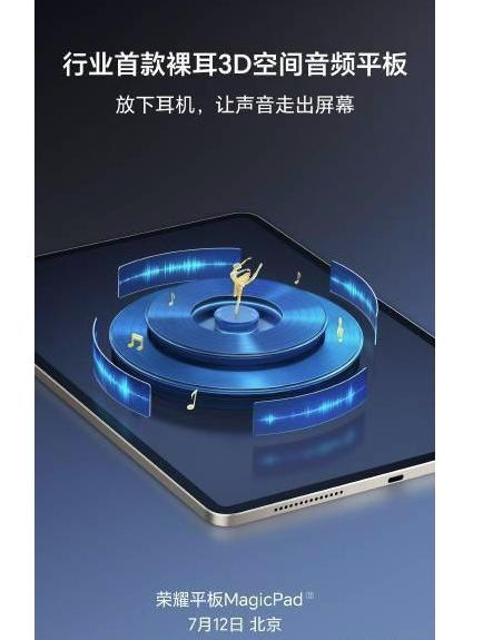 IT之家7月10日消息,榮耀即將舉行全場景新品發布會,其中備受矚目的榮耀平板MagicPad將在發布會上正式亮相。作為業界首款裸耳3D空間音頻平板,榮耀平板MagicPad在音頻體驗上將帶來全新的突破。
