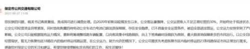 根據官方的說法,在保定市的純電公交車已經被迫停止運營,而全市多個站點的公交線路都已經受到了嚴重的影響,現在公司只能夠根據現在所能夠調配的公交車,來重新調整車輛運營的路線,盡量覆蓋到客流量比較大的地區,在最大程度上保證每一個居民依舊可以享受到公交出行。