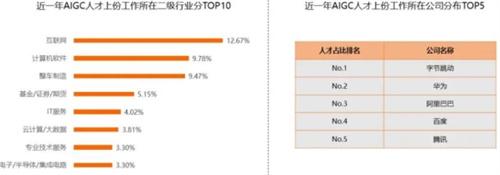 在報告中顯示從2022年的6月份一直到2023年的5月份生成式人工智能有關的職位招聘信息數量增長最為明顯,對于2021年6月份到2022年5月份之間的,一年時間內增長了43.66%,經過調查發現在最近一年時間內生成式人工智能招聘信息中提供的年薪平均為40.12萬元人民幣,主要招聘的三個職位為算法工程師,自然語言處理和產品經理。