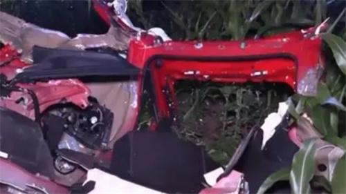 從現(xiàn)場拍攝的車禍圖片中可以看出,這輛特斯拉汽車在撞到路旁的樹以后幾乎已經(jīng)被撞成了碎片,車輛的后備箱和后排座椅已經(jīng)散落在了公路旁邊的田野中,車輛的前端和駕駛位出現(xiàn)在了距離公路幾百英尺外的玉米地中,電池已經(jīng)被撞成了碎片。