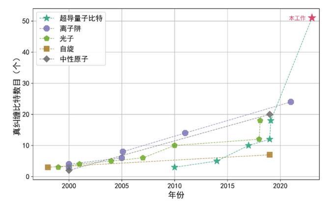 量子糾纏是量子力學(xué)中最神秘也是最基礎(chǔ)的性質(zhì)之一,同時(shí)也是量子信息處理的核心資源,是量子計(jì)算加速效應(yīng)的根本來源之一。多年來,實(shí)現(xiàn)大規(guī)模的多量子比特糾纏一直是各國(guó)科學(xué)家努力追求的目標(biāo)。自1998年人們首次利用核磁共振系統(tǒng)實(shí)現(xiàn)3比特GHZ態(tài)的制備以來,真多體糾纏態(tài)的制備一直是各種物理系統(tǒng)規(guī)模化擴(kuò)展的重要標(biāo)志,包括光子、離子阱、金剛石氮空位色心、中性原子和超導(dǎo)量子比特等。超導(dǎo)量子比特由于其規(guī)模化拓展的優(yōu)勢(shì)而在近年來得到了快速發(fā)展。