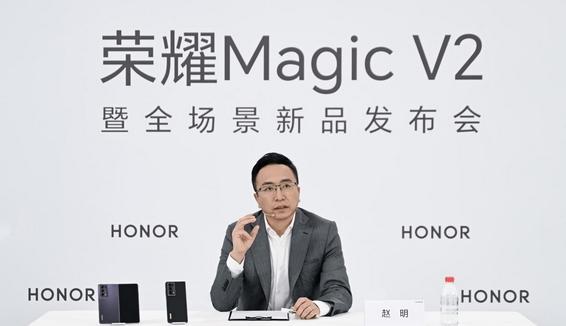 在發(fā)布會(huì)后的專訪中,趙明向媒體表示,自榮耀獨(dú)立以來(lái),他們一直致力于與最強(qiáng)對(duì)手競(jìng)爭(zhēng)。因此,榮耀Magic V2在折疊屏領(lǐng)域沒(méi)有競(jìng)爭(zhēng)對(duì)手,真正的競(jìng)爭(zhēng)對(duì)手是直板旗艦手機(jī)。他還提到,榮耀在2021年就已經(jīng)確立了面向未來(lái)Magic OS的組織和體系架構(gòu),目標(biāo)是與iOS媲美甚至超越它。
