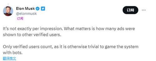 有一名擁有75萬粉絲的推特博主要是自己最近已經(jīng)收到了2.4萬美元的分成,另外他透露從2023年的2月份開始,他推測(cè)平臺(tái)中所發(fā)布的動(dòng)態(tài),截止到目前為止的瀏覽量,一共達(dá)到了21.8萬。有媒體經(jīng)過統(tǒng)計(jì)計(jì)算推測(cè)出大約10億瀏覽量就可以獲得1萬美元的分成,馬斯克在媒體評(píng)論區(qū)內(nèi)強(qiáng)調(diào)瀏覽量并不是分成的主要條件,最終收益的多少主要取決于創(chuàng)作者展示的廣告。