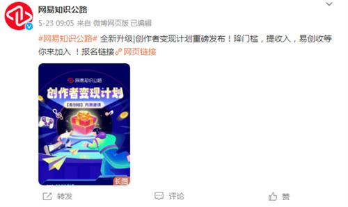 根據資料顯示2020年的12月份網易公司正式推出了短視頻平臺知識公路,在這之后又向國家知識產權申請了多個有關于知識公路平臺的商標。之后在2021年的1月21日,網易公司在視頻創作者現場大會中正式宣布將會開始投入短視頻領域。在當時的大會中,網易官方宣布將會啟動創作者計劃,以10億現金,百億流量,千億曝光作為激勵政策。