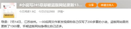 北京時(shí)間2023年7月15日,一則有關(guān)于小說(shuō)更新了245章卻被盜版網(wǎng)站更新了1369章的話題登上了熱搜,迅速引起了社會(huì)各界人士的關(guān)注和討論。在事發(fā)當(dāng)天記者聯(lián)系到閱文網(wǎng)站的相關(guān)工作人員,對(duì)方經(jīng)過(guò)查詢以后確認(rèn)在此件事情中的作者確實(shí)是閱文旗下的簽約作者,另外工作人員表示現(xiàn)在正在和作者一起探討盜版的侵權(quán)情況,經(jīng)過(guò)進(jìn)一步調(diào)查取證以后,將會(huì)進(jìn)行維權(quán)。
