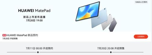 近日,華為商城顯示華為MatePad新品將于7月20日19點發布,并在當晚20:08開啟預售。今天,該產品的詳細配置也被曝光。