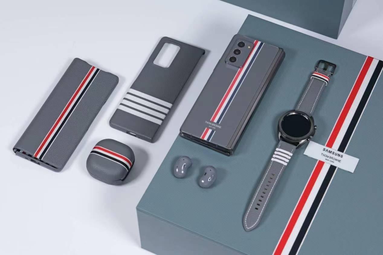 9月12日,三星Galaxy Z Fold5 Thom Browne限量版禮盒正式發售,售價為25499元。在本次禮盒中,包括三星的最新款Galaxy Z Fold5 ,同時也包括Galaxy watch6智能手表、兩組皮革保護殼、兩組表帶以及一支s pen,為消費者負責定制版充電器等各種配件。本次禮盒的設計也非常高端大氣,采用經典的公文包造型,外觀是紅白藍的條紋元素配色。禮盒中的Galaxy Z Fold5與常規版也有很大的不同之處,背面采用的配色與禮盒的配色完全相同,依然是紅白藍配色。