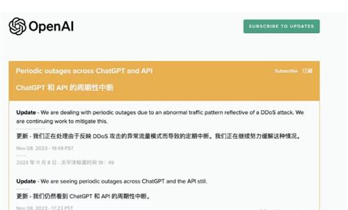 文中所指的DDOS是分布式拒絕服務(wù),通過大規(guī)模互聯(lián)網(wǎng)流量淹沒目標(biāo)服務(wù)器或其周邊基礎(chǔ)設(shè)施,從而達(dá)到破壞目標(biāo)服務(wù)器或者網(wǎng)絡(luò)正常流量的惡意行為。 ChatGPT在11月6日舉行了首屆開發(fā)者大會(huì)之后,系統(tǒng)進(jìn)行進(jìn)一步的更新,并且也推出了更多強(qiáng)大的功能,導(dǎo)致訪問量激增。比如ChatGPT的自定義功,以及未來的GPT商店等等,在過去一年內(nèi)出現(xiàn)嚴(yán)重中斷的情況并不是很多,公司方面已經(jīng)給出明確解釋正在做快速的處理,用戶無需擔(dān)心。