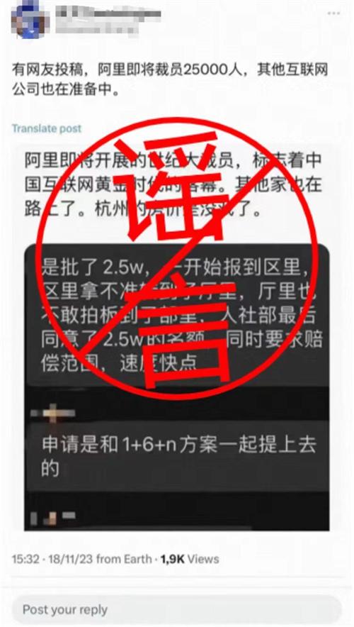 近期,網絡上流傳阿里即將裁員25,000人的相關謠言,阿里巴巴公司已經出面澄清。關于裁員接二連三的謠言越來越多,阿里方面表示,針對這些謠言已經報警。在5月底的時候,阿里巴巴集團針對裁員謠言已經做出過回應表示:近期關于淘寶天貓、阿里云、菜鳥本地生活,各個業務裁員謠言傳得很厲害,但謠言就是謠言,我們的招聘正在緊鑼密鼓的進行。