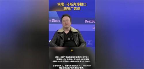 馬斯克在當?shù)?/strong>11月29日,2023年DealBook峰會上發(fā)言回應,因為贊同反猶太主義鐵文導致美國多家廣告商暫停在社交平臺X上投放廣告的事件。馬斯克表示:如果有人想用不再投放廣告來要挾我?用金錢來要挾我?去你X的。馬斯克在談話中還暗示他的粉絲以及全平臺的粉絲將會抵制這些廣告上。“全世界都會知道是哪些廣告商毀了這家公司,我們會把這些詳細的記錄下來。”