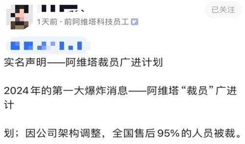 近日,有一名社交平臺中被官方認證為阿維塔科技公司的員工發文表示,因為公司架構的調整,阿維塔在全國范圍內裁掉了95%的售后人員。阿維塔品牌的相關負責人在評論區內回復表示,該消息屬于不實信息,部分的人員只是進行了轉崗調整,只是為了提高運營效率和服務客戶的響應速度。現在已經將門店中的銷售業務全部轉交給了合作伙伴。