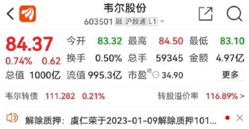 韋爾股份的股價從2022年的年初達到了229.09元每股,回落到了2022年底的77.09元每股,市場的縮水幅度達到了66.35%,截止到2023年的1月13日,韋爾股份的市值為1,000億元,在全球疫情爆發以前消費電子的智能手機出貨量連年創出歷史新高,這是全球出現了多家芯片生產企業,由于芯片價格的不斷上漲,經銷商也開始了芯片的存貨當市場出現飽和時,芯片的銷量就會出現下滑,而經銷商又對于存貨進行出售就會導致市場出現低價的現象。