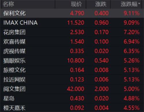 在春節檔期港股影視股持續走強,早盤剛開始歡喜傳媒就出現了大幅度高開,在盤中漲幅就已經高達27%,隨后就開始出現下跌,截止到午間收盤,歡喜傳媒的上漲幅度為6.25%,每股報1.53港元,只是表現強勢的不僅有歡喜傳媒,還有港股中的其他一些影視股。