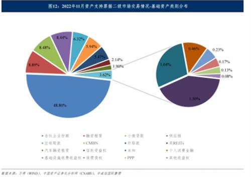 將12月份的債券類產品新增備案規模按基礎資產二級分類,新增備案規模累計共占了月度新增規模的66.72%,主要包括了應收賬款,商業不動產抵押貸款、小額貸款債權、融資賃債權等,和11月份相比下降了11.65%,在2022年12月份新增的備案規模環比出現了大幅度減少,減少率為45.18%,同比減少了大約52.85%。