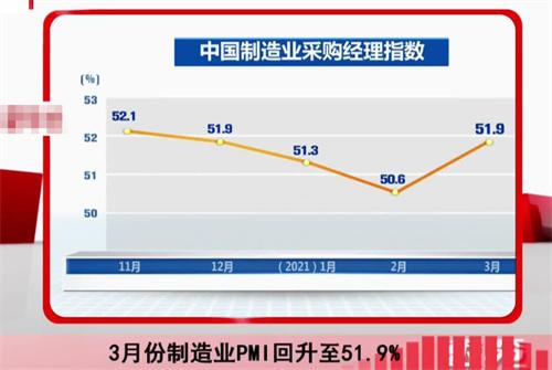 3月31日國家統計局發布數據,3月份制造業的采購經理指數為51.9%,比預期數字多出3個百分點,和上個月的數據相比下降了0.7%,整體上制造業仍然顯示出增長的態勢,3月份非制造業商務活動指數為58.2%,和上個月相比上升了1.9個百分點,這也表明中國經濟正在迅速恢復過程當中,東方金誠首席宏觀分析師王青表示,3月份召開的兩會提出的一系列經濟復興的政策,再加上央行的降準政策,多重因素影響之下,國民消費出現顯著的增長,其中主要出現在餐飲和出行兩方面,PMI是反映宏觀經濟走勢的一個重要的指標,其中包括對企業采購經理的月度調查結果匯總、編制的指數以及企業采購、流通、生產等各個環節的數字,具有很強的先行作用。