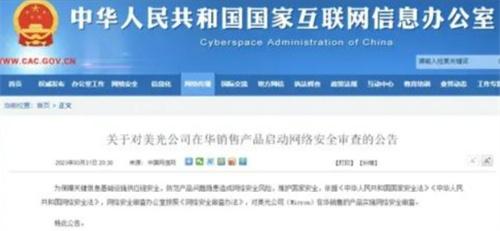近日網絡安全審查辦公室對美國公司在華的銷售產品進行了網絡安全審查,經調查發現美光公司的產品存在著很大的網絡安全隱患,對于我國關鍵信息的基礎設施供應鏈造成了很大的安全風險,極大程度的影響我國的國家安全,為此網絡安全審查辦公室,依法作出不通過網絡審查的結論,按照網絡安全法等眾多法律法規,禁止我國信息基礎建設的運營者和運營機構,通過任何形式來采購美光公司的產品。
