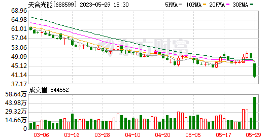 5月29日,在股票市場中,作為光伏發電的龍頭企業,天合光能出現了股票暴跌的情況,股票一度跌過了16%。暴跌的幅度,甚至已經趕超了第2位的近兩倍之多,直到股市收盤之后,和光能的股票已經跌落到了16.34%,這也就代表著天合光能在每天將會損失近171億元的市值,而天合光能的總市值僅為876億元。之所以天合光能的股票會下跌16%,其主要原因則是和天河大股東計劃套現50億有著直接的關系。