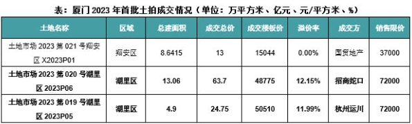 蘇州第一批次十一宗宅地分別在2月16日和2月23日順利出讓,其中有兩宗土地溢價成交,六宗土地底價成交,三宗土地觸頂成交,總出讓面積為39.29萬平方米,平均溢價率大概在7.46%左右。
