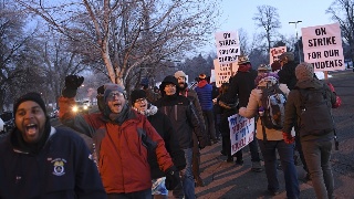在芝加哥,正在發生一場更加不同尋常的罷工,本周四所私立經營但受公共資助的特許學校的工會教師走出教室,要求更高的工資和更小的班級規模。