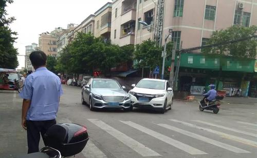 據警方稱,沿著亞皆老街前往旺角的一輛銀色梅賽德斯 - 奔馳撞上了一輛黑色的特斯拉,后者正沿公主道往尖沙咀方向行駛。