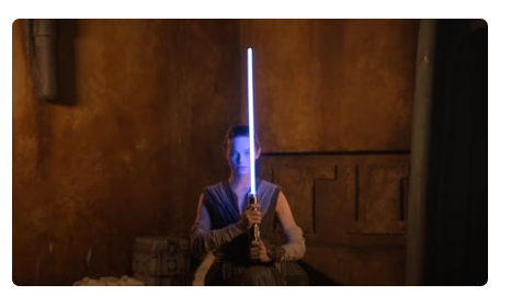 迪士尼展示了四月份談論的“真正的”光劍。該公司發布了一段視頻,展示了他的行動。與之前所有的玩具不同,這把劍的激光從手柄上延伸出來,這使它盡可能地與電影中的武器相似。