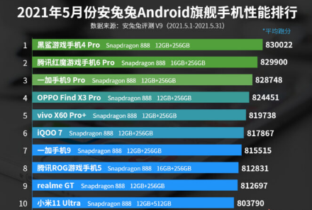 最新的性能最佳 Android 旗艦智能手機(jī)列表中充滿了由 Qualcomm Snapdragon 888 驅(qū)動(dòng)的設(shè)備,就像之前的列表(2021 年 4 月)一樣。新名單不再包括聯(lián)想軍團(tuán)手機(jī)決斗2(又名聯(lián)想軍團(tuán)2 Pro)和小米11。