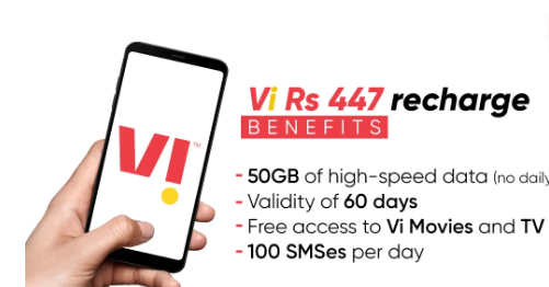 Vodafone Idea Rs 447 預(yù)付費(fèi)充值計(jì)劃附帶 50GB 高速 4G 數(shù)據(jù),有效期為 60 天。它每天為用戶提供 100 條短信、無限制地?fù)艽蛉魏尉W(wǎng)絡(luò)的語音電話以及訪問Vi 電影和電視的娛樂內(nèi)容。有了這個(gè),Vi 用戶還可以選擇沒有每日數(shù)據(jù)限制的充值包。