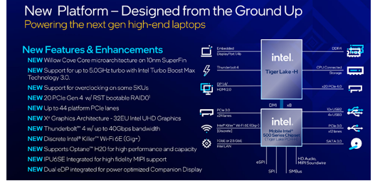 繼 1 月宣布用于超便攜游戲筆記本電腦的第 11 代酷睿“Tiger Lake”H35芯片之后,英特爾今天推出了五款更強大的 H 系列處理器,用于更大、更強大的機器。