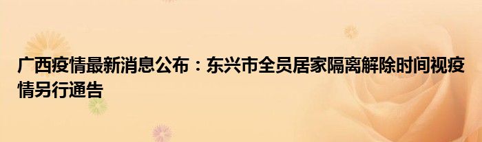 一、從2021年12月22日8時起,對東興市實行居家隔離管理,解除時間視疫情另行通告。