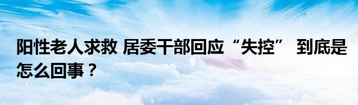 【陽性老人求救 居委干部回應(yīng)“失控”】疫情之下的上海,市民們遇到了各種各樣的困難,這個時候就需要廣大基層干部挺身而出,為民服務(wù)。13日,老人發(fā)燒電話向社區(qū)發(fā)出求助的語音在網(wǎng)上熱傳。這位老人到底是什么情況?他的問題最后得到解決了嗎?
