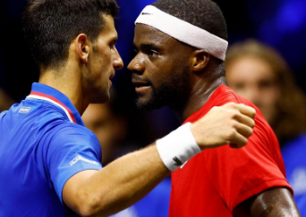 諾瓦克·德約科維奇在兩個月后取得了令人印象深刻的回歸,因為歐洲隊的明星以6-1,6-3擊敗了世界隊的弗朗西斯·蒂亞福,羅杰·費德勒在周六的拉沃杯上為他加油。