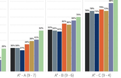 2019年,A*(8-9)等級的數量為7%,但現在已轉變為29%,增長了22%。