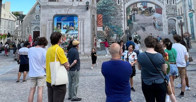 今年 8 月,電影和媒體研究、數字媒體、創意寫作、城市規劃和法語等學位的學生前往蒙特利爾和魁北克市,作為基于地方講故事的跨學科電影課程的一部分。