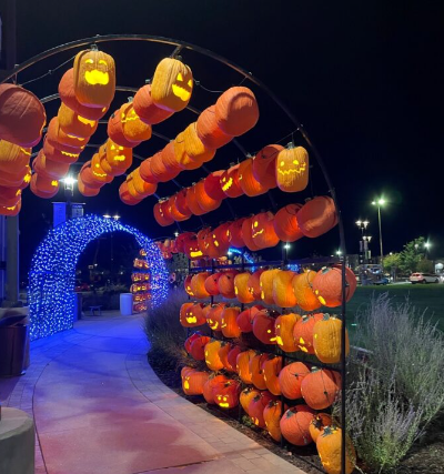 在整個 10 月份的購物時間,每天晚上,750 個南瓜將點亮果園。每個泡沫南瓜都是手工雕刻的,獨一無二。一定要留意隱藏在整個展覽中的六個猶他州主題南瓜。