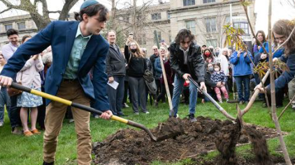4月29日星期五,愛(ài)荷華大學(xué)成為美國(guó)第13個(gè)種植栗樹(shù)樹(shù)苗的地點(diǎn),這象征著安妮·弗蘭克在二戰(zhàn)期間躲避納粹的希望。