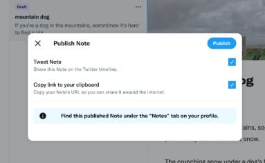 Twitter正在嘗試一種新的長格式格式,可以讓你拍攝超過280個字符,這意味著你可能不再需要通過編號的推文線程來傳遞你的幽默軼事。這項名為Notes的新功能使用戶能夠將整篇文章直接寫到社交媒體平臺上,甚至包括照片、視頻、GIF和推文。